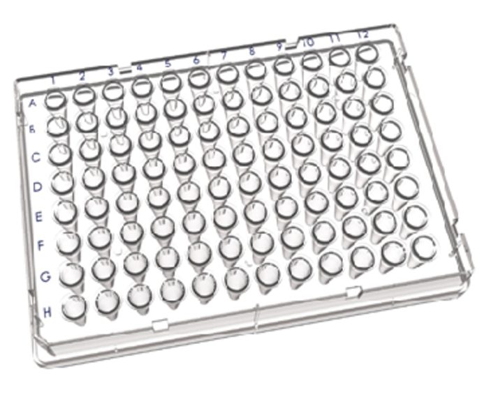 该款用于基因组测试的SBS标准96孔微孔滴定板使用的TOPAS® COC 材料,拥有比聚丙烯(PP)和聚碳酸酯(PC)更高的刚性和热稳定性。TOPAS® COC 在热稳定性方面可以满足高达100℃的温度循环测试。此外,其高刚性便于机器手的自动化作业。其出色的光学特性(透光率92%)有助于提高激光检测及实时观察的可靠性。